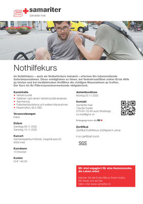 Kein passendes Datum gefunden? Hier finden Sie weitere Kurse bei Seetaler Samaritervereinen.